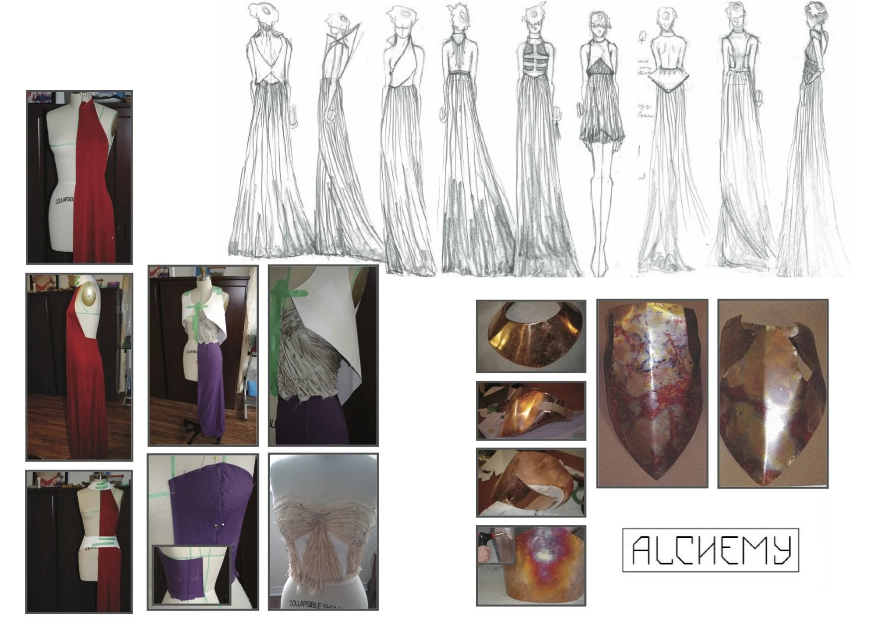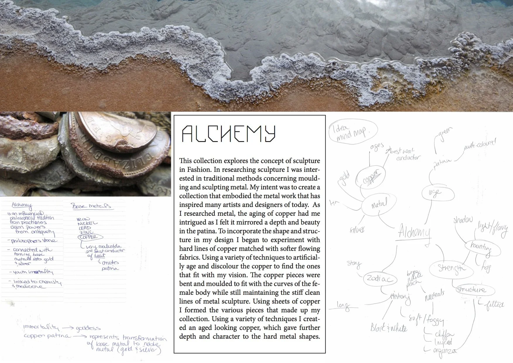 This collection explores the concept of sculpture in Fashion. In researching sculpture I was interested in traditional methods concerning moulding and sculpting metal. My intent was to create a collection that embodied the metal work that has inspired many artists and designers of today. Below is the journey taken to get to the final collection.